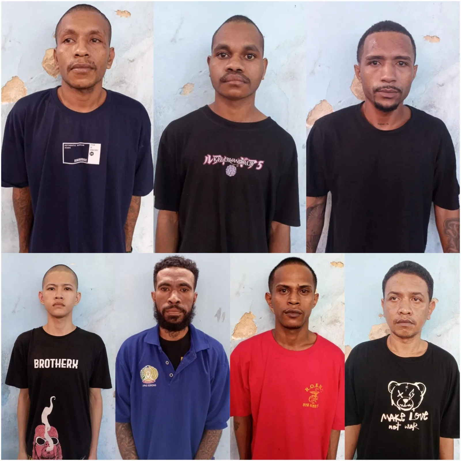 | Foto tujuh orang yang beredar adalah pelaku kanibalisme. | Salah. Foto itu identik dengan tujuh narapidana yang kabur dari Lapas Kelas IIB Papua Barat Daya pada 1 April 2025. |