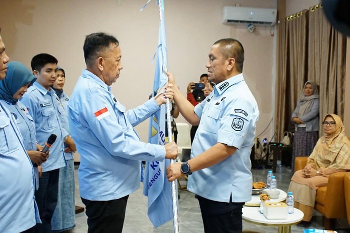 Prosesi pengukuhan ditandai dengan penyerahan bendera pataka dari Bupati Irwan kepada Ketua KUAT, Nurdin M. Momentum tersebut disambut antusias para pengurus dan undangan yang hadir.