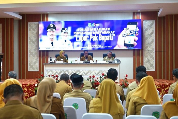 WaraNews.id — Pemerintah Kabupaten Luwu Timur melalui Dinas Komunikasi, Informatika, Statistik dan Persandian (Kominfo-SP) menggelar sosialisasi aplikasi pengaduan masyarakat “Lapor Pak Bupati” di Aula Sasana Praja, Kantor Bupati Luwu Timur, Senin (20/4/2026).
