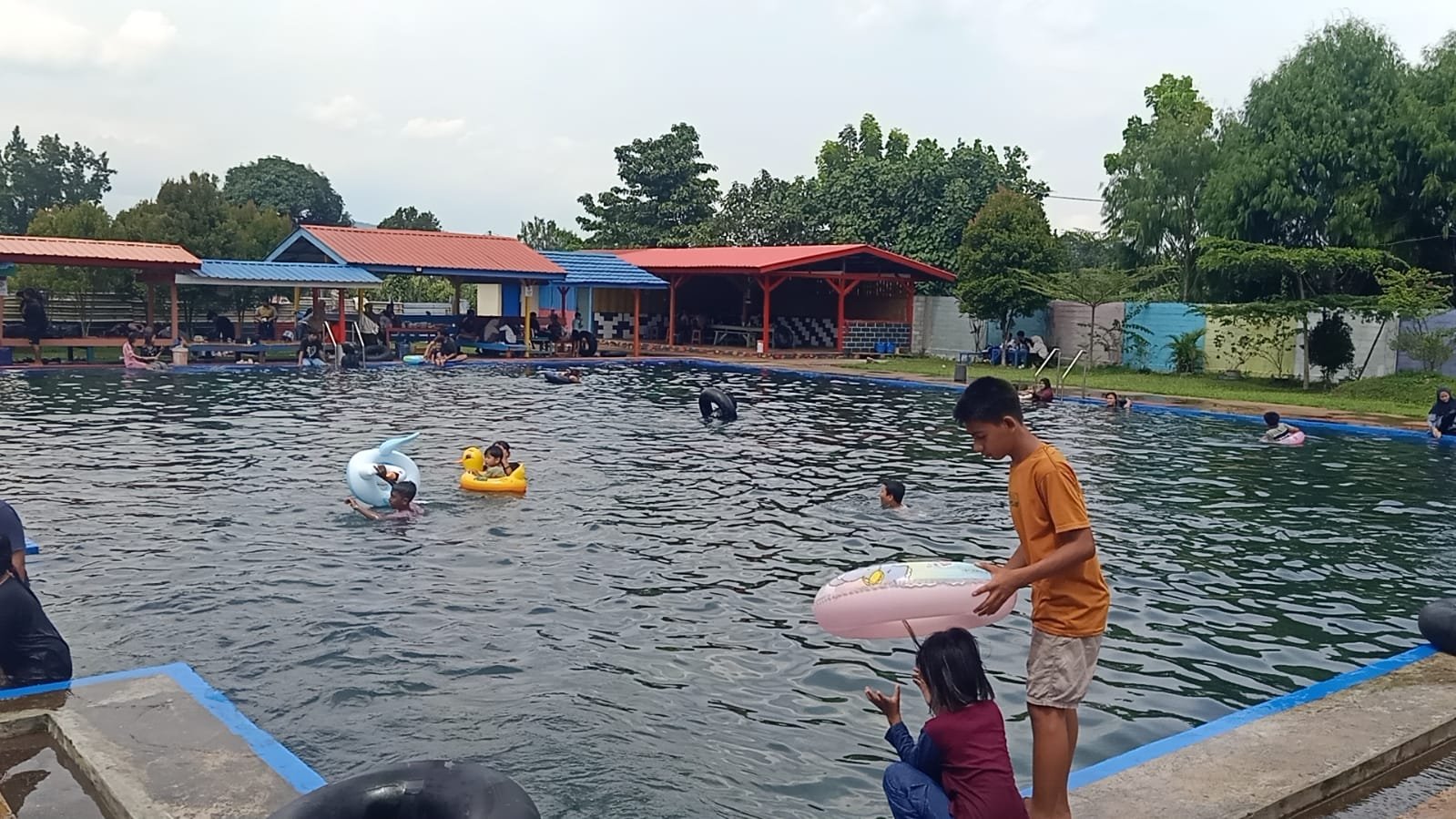 “Ini cocok sekali rekreasi sama keluarga, area luas dan harga masuk relatif murah, Rp10 ribu kita bisa sepuasnya berenang. Lengkap juga dengan ban untuk anak-anak sehingga lebih aman saat berenang,” ujar Erly.